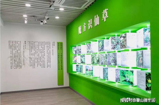 仙草馆展厅——“魔方识仙草”,霍山是我国的“微型药库”,境内有植物类药材238科1793种,这儿会集展现了霍山石斛、霍山赤芝、断血流、天麻、茯苓等27种宝贵药材,有图片、有简介。