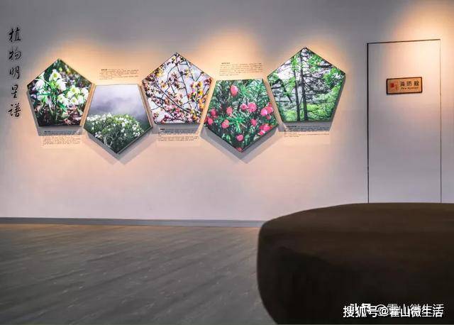 动物明星谱和植物明星谱,霍山有6500多种生物物种,这儿展现的动物包含世界濒危物种——中华秋沙鸭、我国最美小鸟——蓝喉蜂虎、娃娃鱼、金钱豹、小灵猫等;展现的植物包含霍山石斛、银缕梅、都支杜鹃、大别山五针松等。