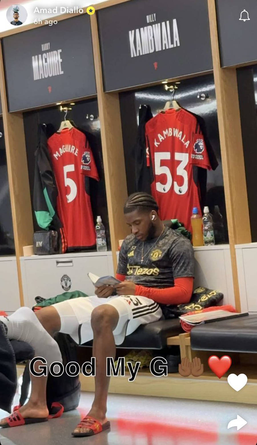 坎布瓦拉不仅在比赛中表现不俗,而且精神和态度也得到球迷认可。比赛前,法国小将把外套送给了身前的小球童遮雨。在失误后他没放弃,奋力弥补,成功封堵努涅斯后,向老特拉福德西看台挥舞双臂激励士气。据曼联队友披露,每场比赛前,这位小伙子还会在换衣间里阅读《圣经》,以便确保自己凝神静气。