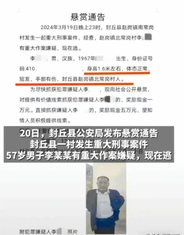 此案产生后,封丘县警方当即发动了查询程序,并敏捷发布了赏格布告,全力追捕凶手。在社区和警方的一起尽力下,3月21日正午,李茂松终究在长垣市常村镇被捕。