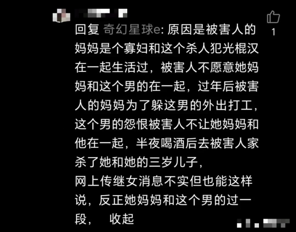 在园园家近邻,两位年近7旬的白叟对被害人园园形象很好,我们都以为觉得她是个达观开畅,尽力孝顺的人。提起被害的园园和两岁半的孩提时,两位白叟唏嘘不已,当晚也没听到什么动静,对自己的女儿和外孙,他怎样下得去手?
